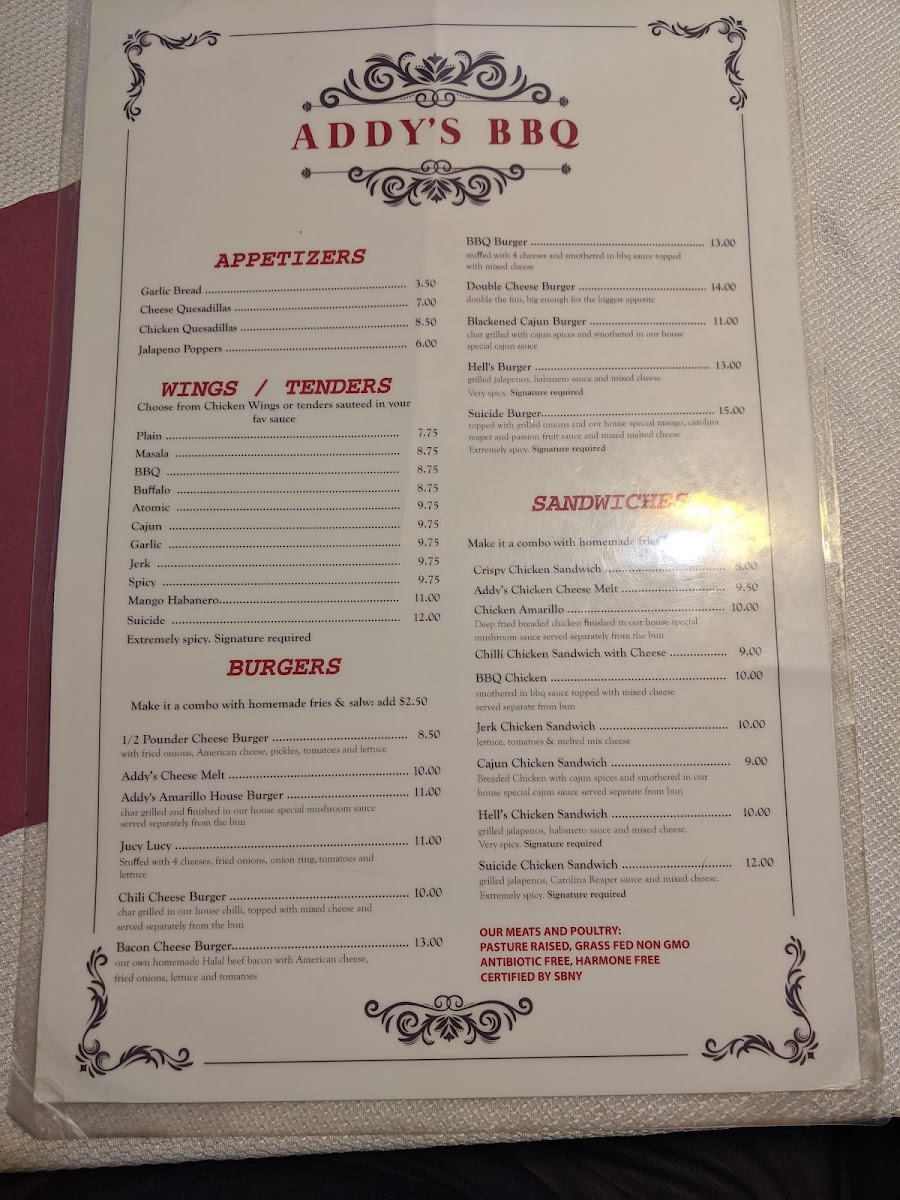 ADDY'S BBQ Menu